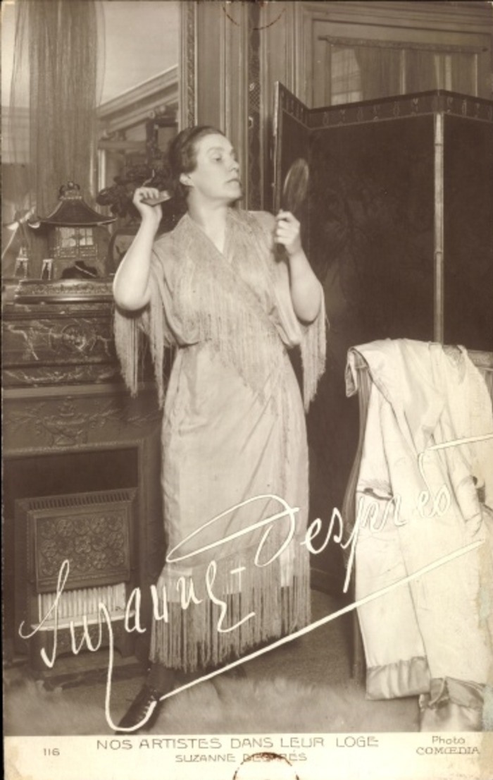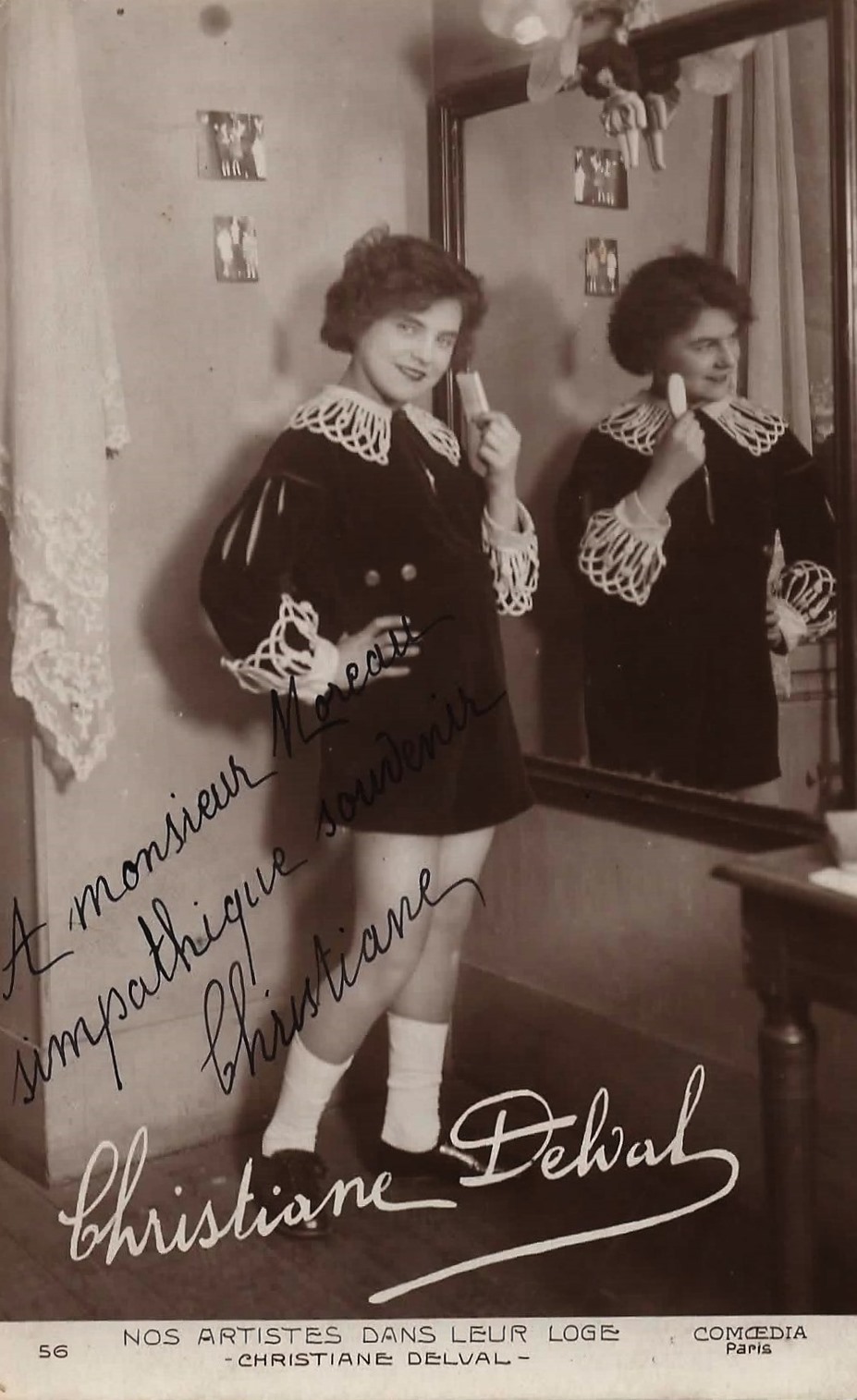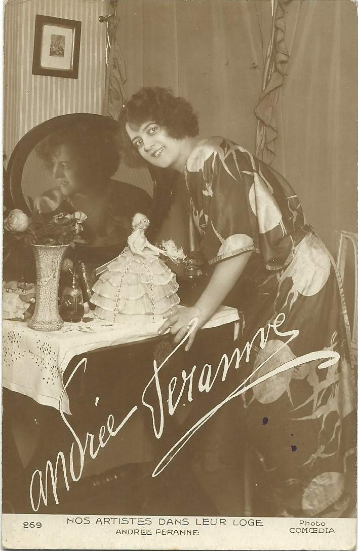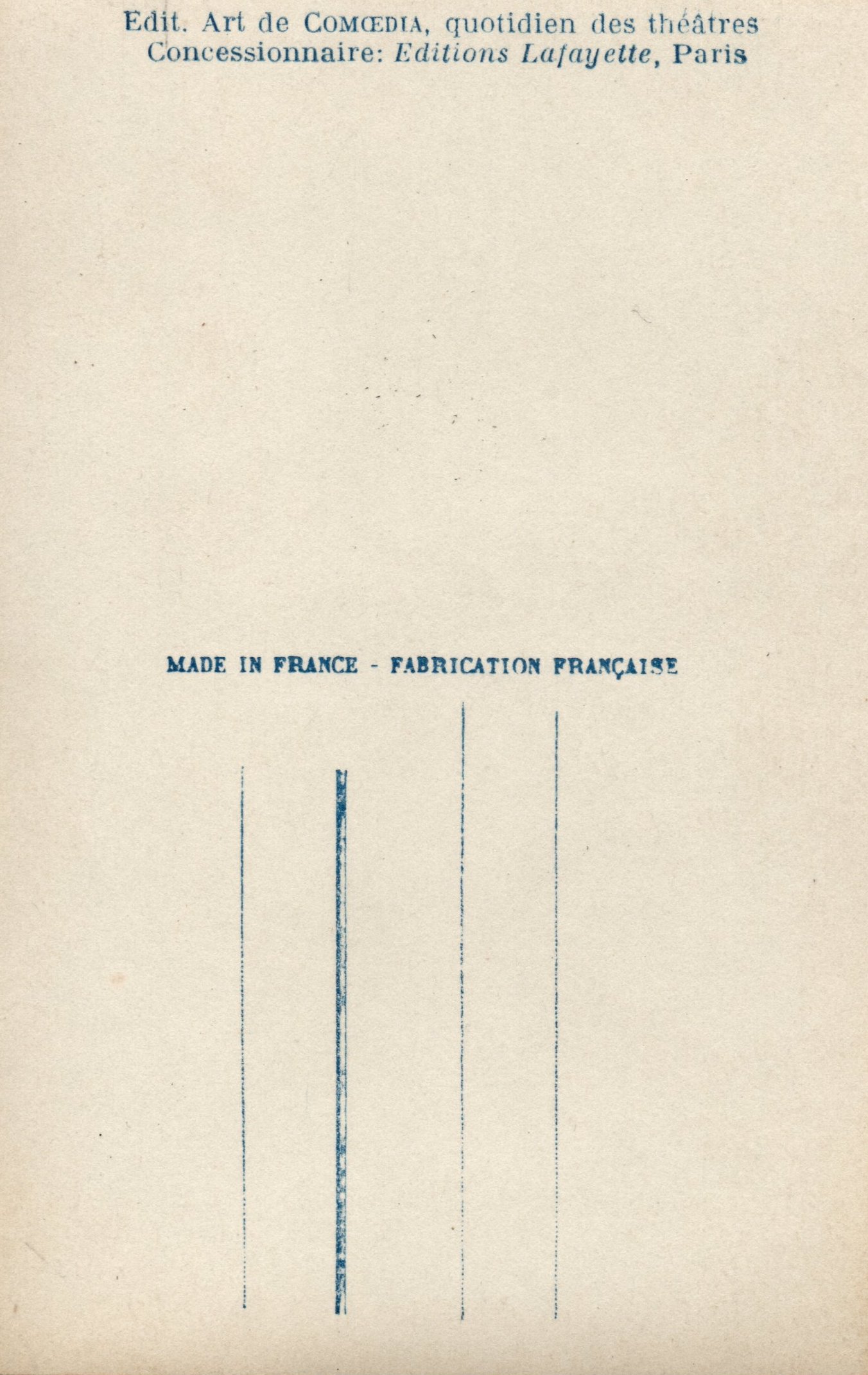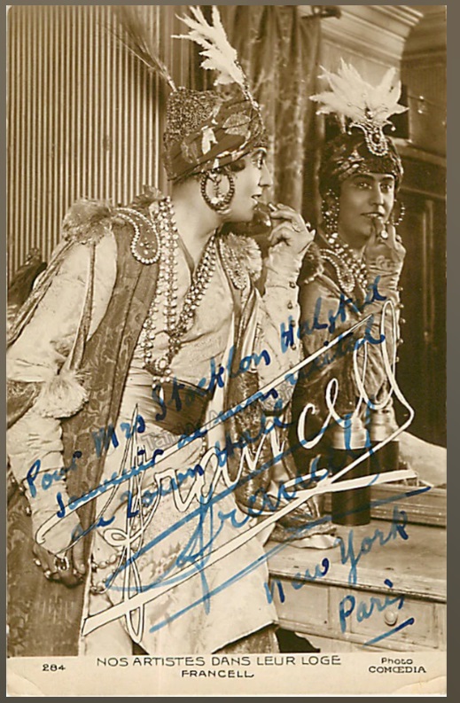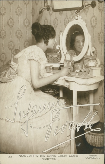 The daily French periodical, Comœdia, published a number of performer postcards in the 1920's. The September 4, 1921, issue of the magazine announced the production of the cards, created to meet the readers' demand for reproductions of images of popular performers at an affordable price.