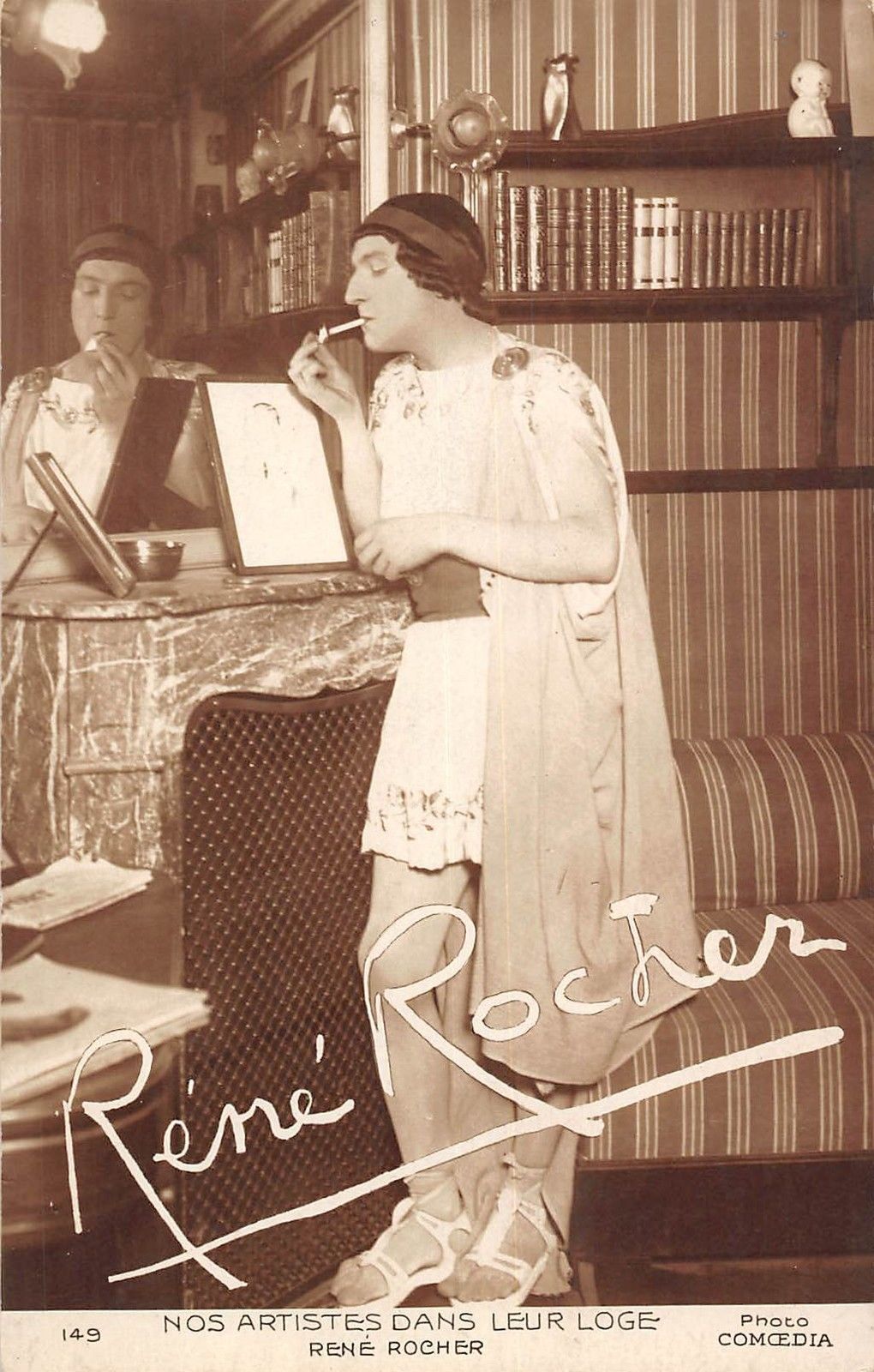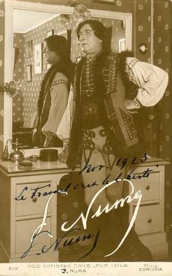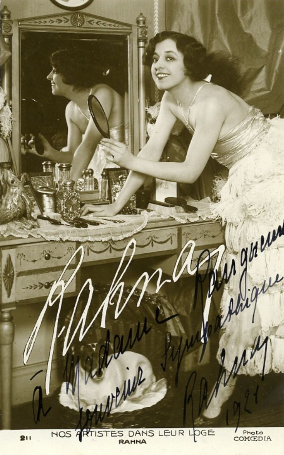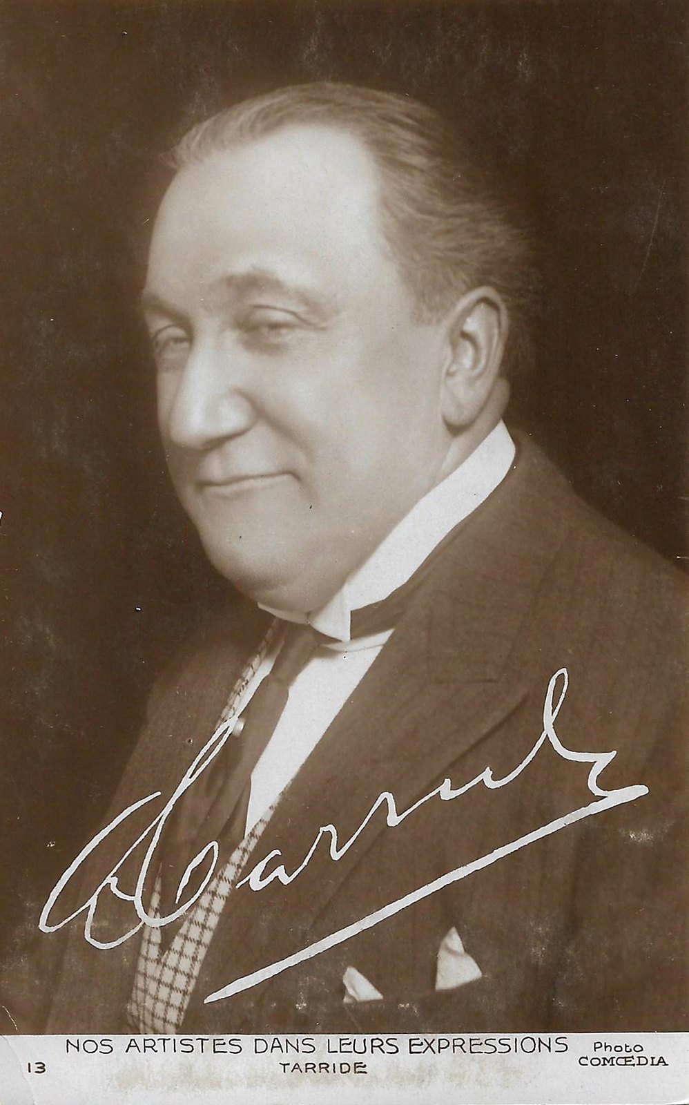 The daily French periodical, Comœdia, published a number of performer postcards in the 1920's. The September 4, 1921, issue of the magazine announced the production of the cards, created to meet the readers' demand for reproductions of images of popular performers at an affordable price.