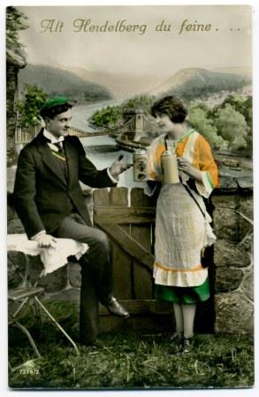 Exceptions to the handcoloring of monchromatic cards are the series at 1001-1099 which were printed from early color photographs and are marked as Miethe Naturfarben series. Describing the series, metropostcard.com notes: "[Dr. Adolph Miethe] contributed to many important advancements in photography. He made the first telephoto lenses for cameras, improved on panchromatic films, and with Johannes Gaedicke invented magnesium flash powder. In 1903 Wilhelm Bounphol built a trichrome camera based on Miethe's scientific work capable of exposing the same scene to three different panchromatic negatives through different colored filters. Each negative could then be exposed to a different plate in the printing of postcards with the resulting image displaying the actual colors of the scene without the need of retouching. These German made tricolor cards were often labeled Original Miethe Naturfarben Postkarte."