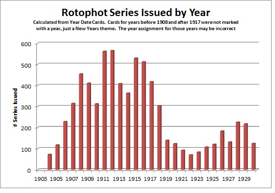 During the years of 1902-1929, the Rotophot Berlin company issued tens of thousands of photographic postcards in numeric series, with each series comprised of multiple individual cards. Within a series, cards are marked with a Rotophot logo, a series number, and a card number. (A number of cards issued prior to the 'series' cards have been identified. An incomplete collection of these early Rotophot cards is available in an Early Series catalog.)