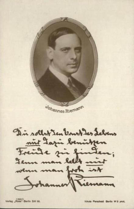 | Riemann, Johannes 31 May 1888 - 30 Sep 1959 |