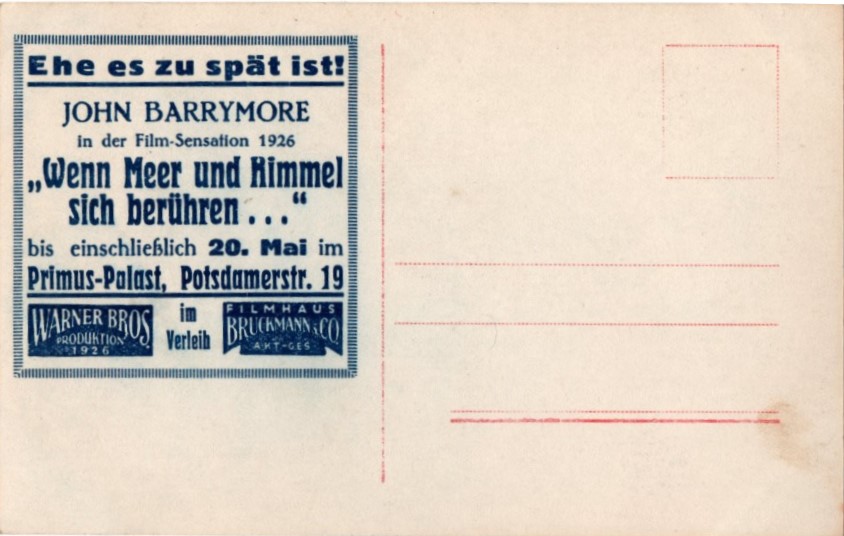 ![]() 55 Verso John Barrymore in "Wenn Meer und Himmel sich berühren" |